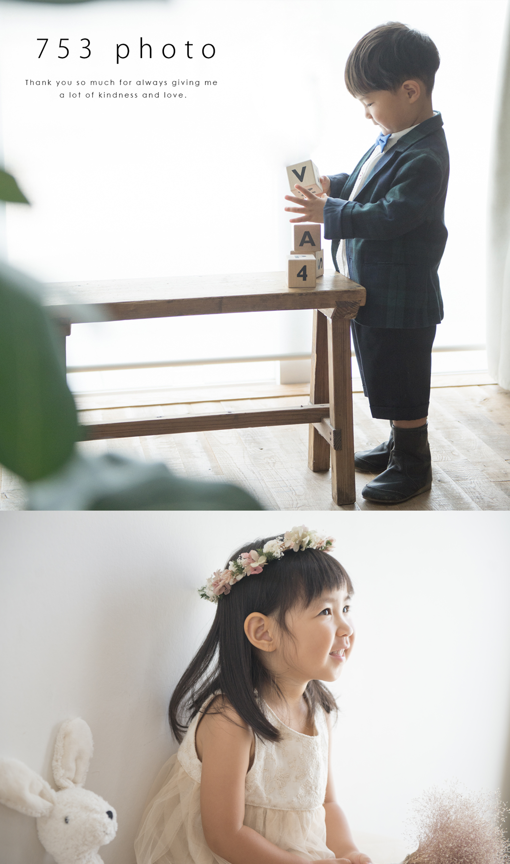 シンプル&ナチュラルな雰囲気、そのお子さんらしさを引き出します。